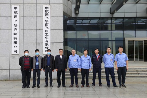 图:中航通飞华南公司董事长熊贤鹏(中间)与广东亚太公司董事长朱增余(左四)合影
