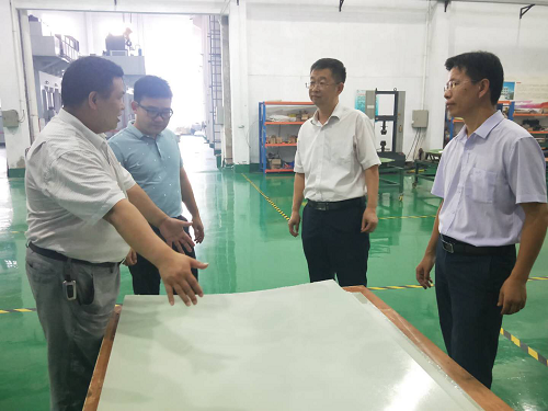 图二:调研组一行在智能化复合材料汽车零部件成型车间参观温树斌局长和陈振刚调研员一行还参观汽车雨刮线车间,了解到汽车雨刮线产品在受疫情影响下实现逆势增长,非常高兴的表示:这是亚太公司科技创新成功的成果,希望亚太公司在汽车零部件行业不断加大科技创新力度,突破复合材料汽车零部件检测等相关技术,快速将成果产业化,实现良好的经济效益,为肇庆市科技工作和经济发展作出积极的贡献。