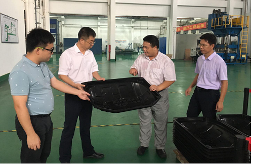 罗国伟向温树斌局长和陈振刚调研员一行重点介绍了亚太公司承担的广东省重点领域研发计划“新能源汽车”重大科技专项“汽车用复合材料零部件热塑性智能化生产线开发”项目的实施进展情况。温树斌局长指出,该项目将有力推动四会市汽车用复合材料零部件智能化和批量化生产,吸引和带动更多的汽车装备制造企业到四会落户,为加快打造新能源汽车产业集群发挥重要的推动作用。并表示科技局一定会全心全意为亚太做好服务,及时帮助解决项目研发过程中遇到的各类困难和问题。