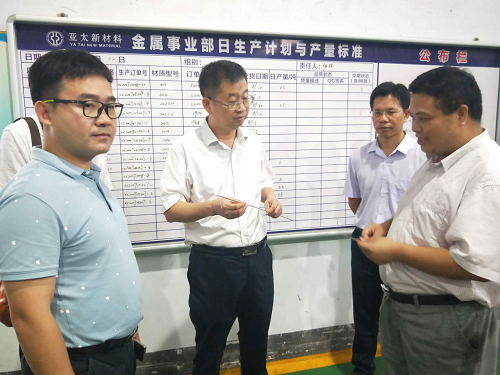 肇庆市科技局领导莅临亚太调研产学研合作工作阅读次数:881 | 发布日期:2020/9/18 | 作者: | 来源:9月16日,肇庆市科技局温树斌局长和陈振刚调研员一行,在四会市副市长魏繁强和四会科技局朱海清局长陪同下,莅临亚太调研产学研合作开展情况。亚太公司副总经理罗国伟等公司管理人员热情接待。
