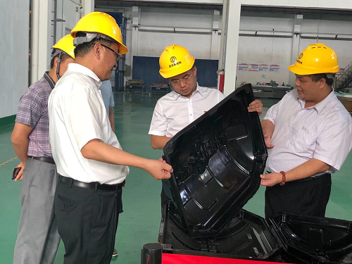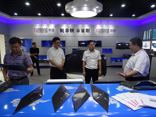 等领导的陪同下深入复材事业部车间了解车零部件用复合材料产品。